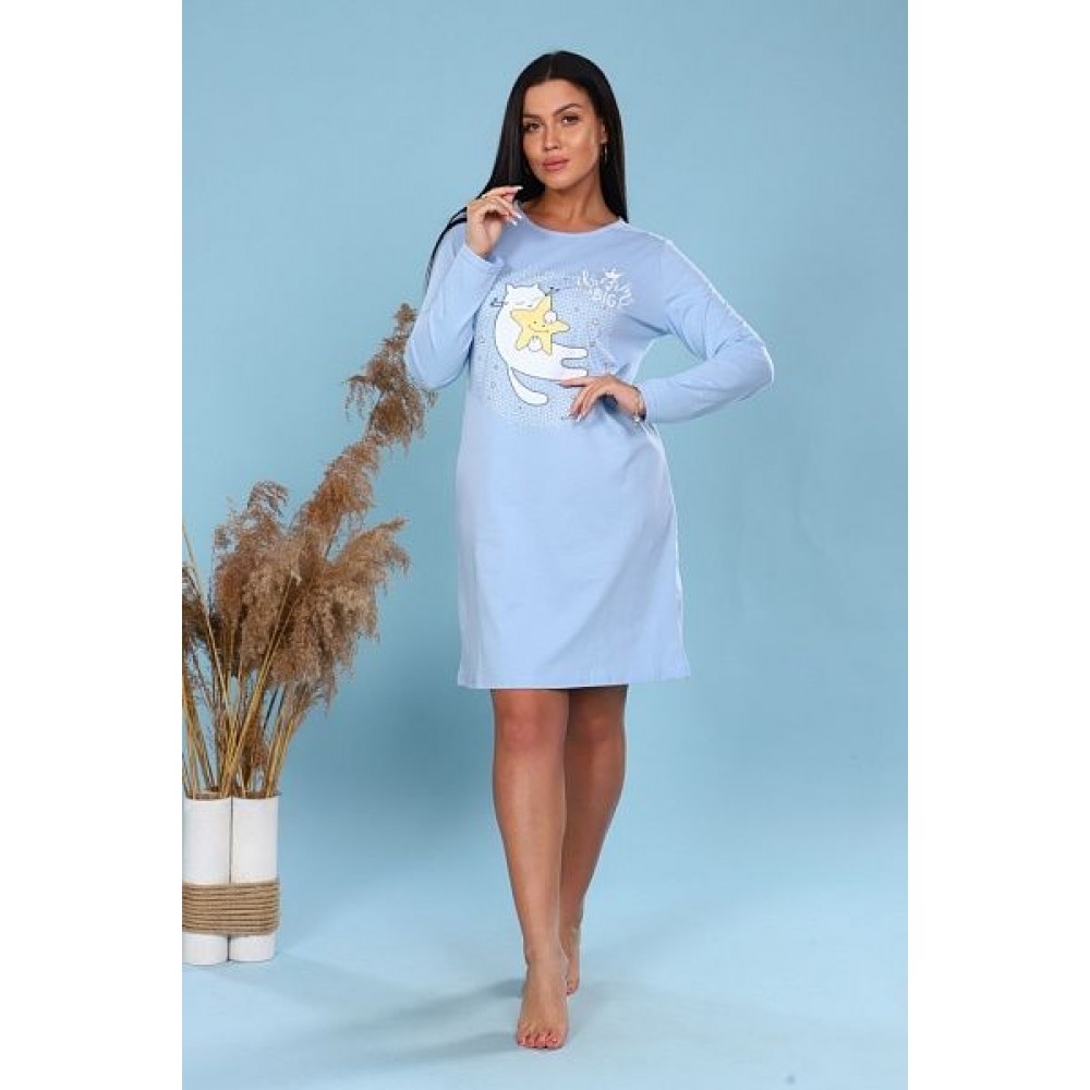 Ночная сорочка с длинным рукавом из однотонной кулирки (пачка). На полочке принт.