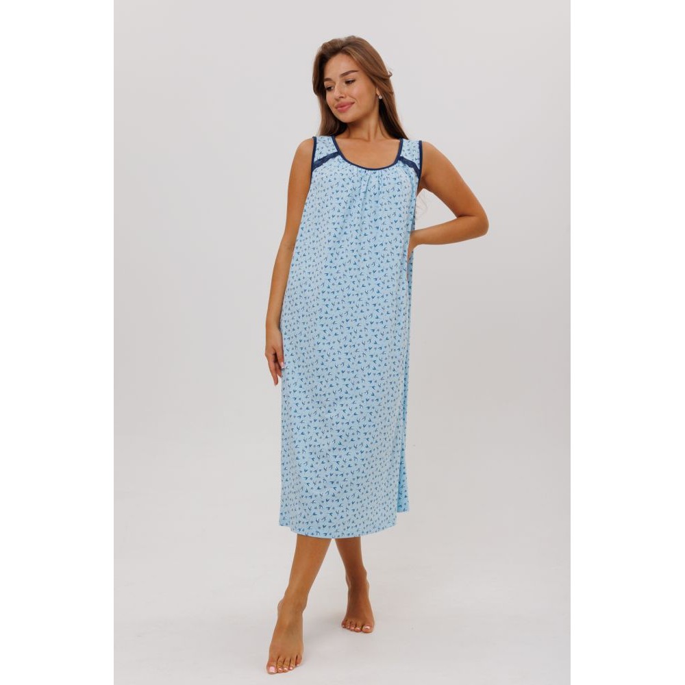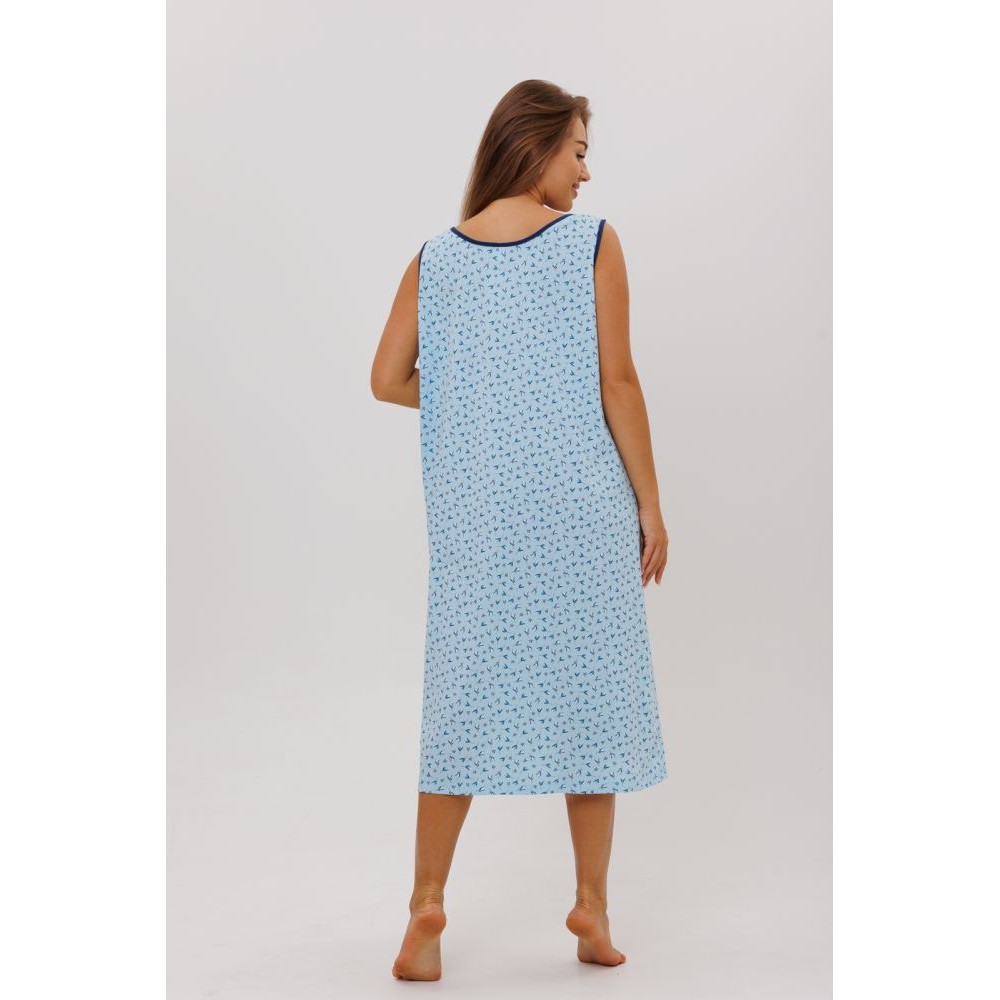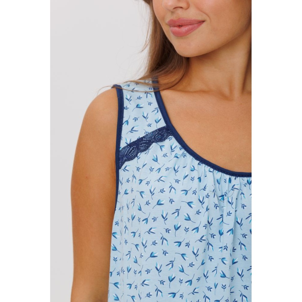 Сорочка женская из кулирки без рукавов голубая Цветы