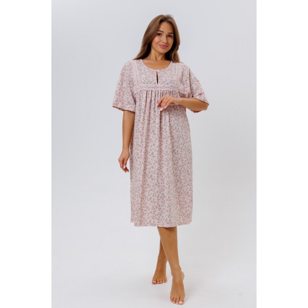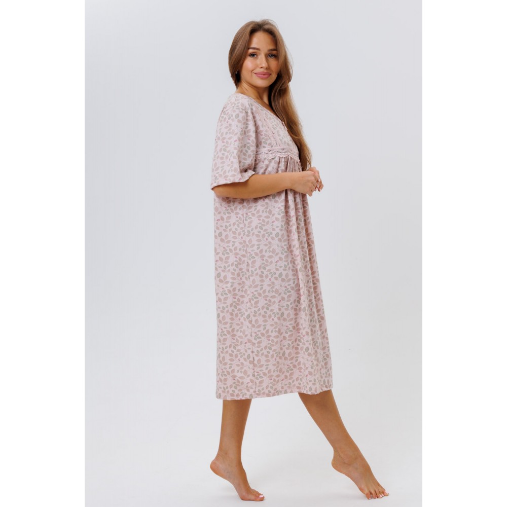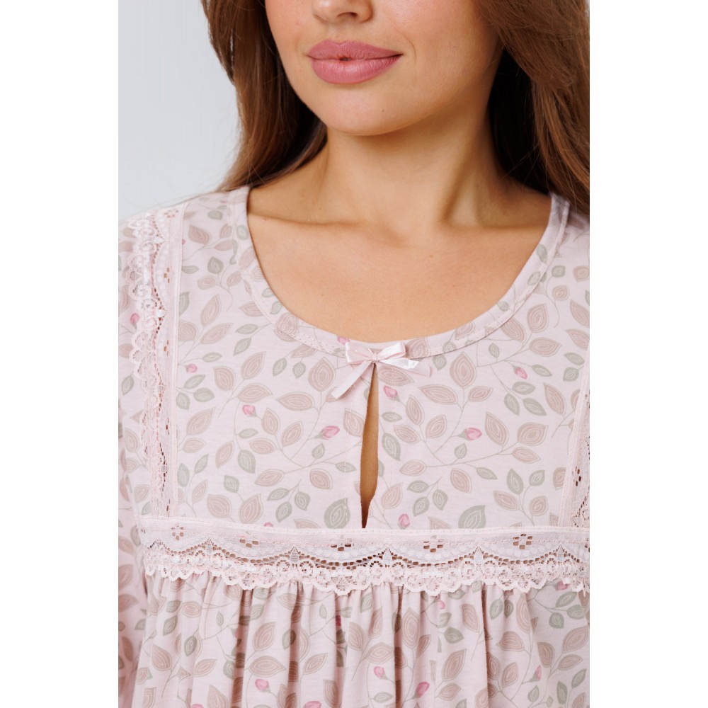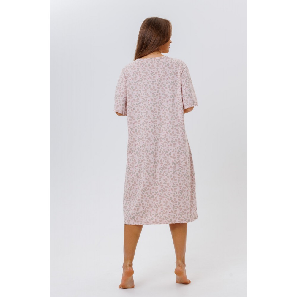 Сорочка женская из кулирки с коротким рукавом розовая Листья Kuzina