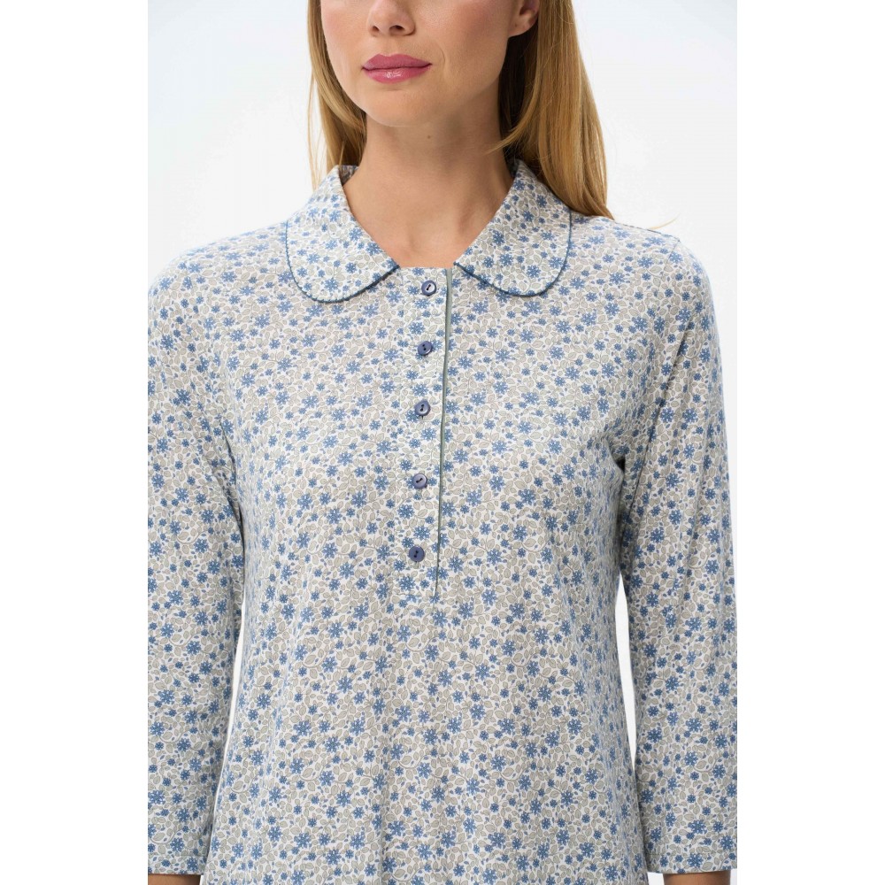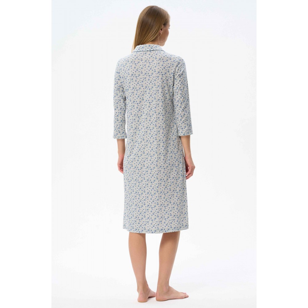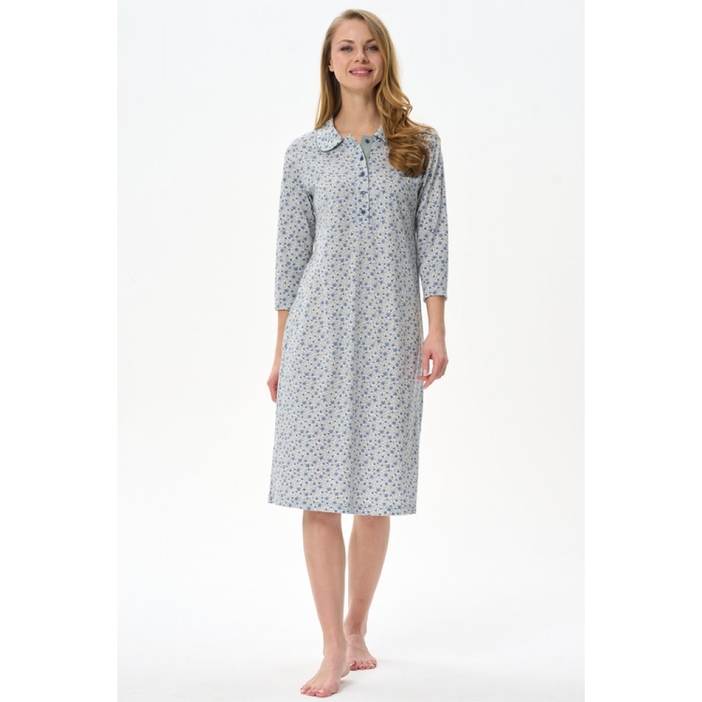Ночная сорочка из хлопкового трикотажного полотна с вискозой, прямого силуэта. Круглый отложной воротничок. Планка с застёжкой на пуговицы. Состав: 50% хлопок, 50% вискоза
