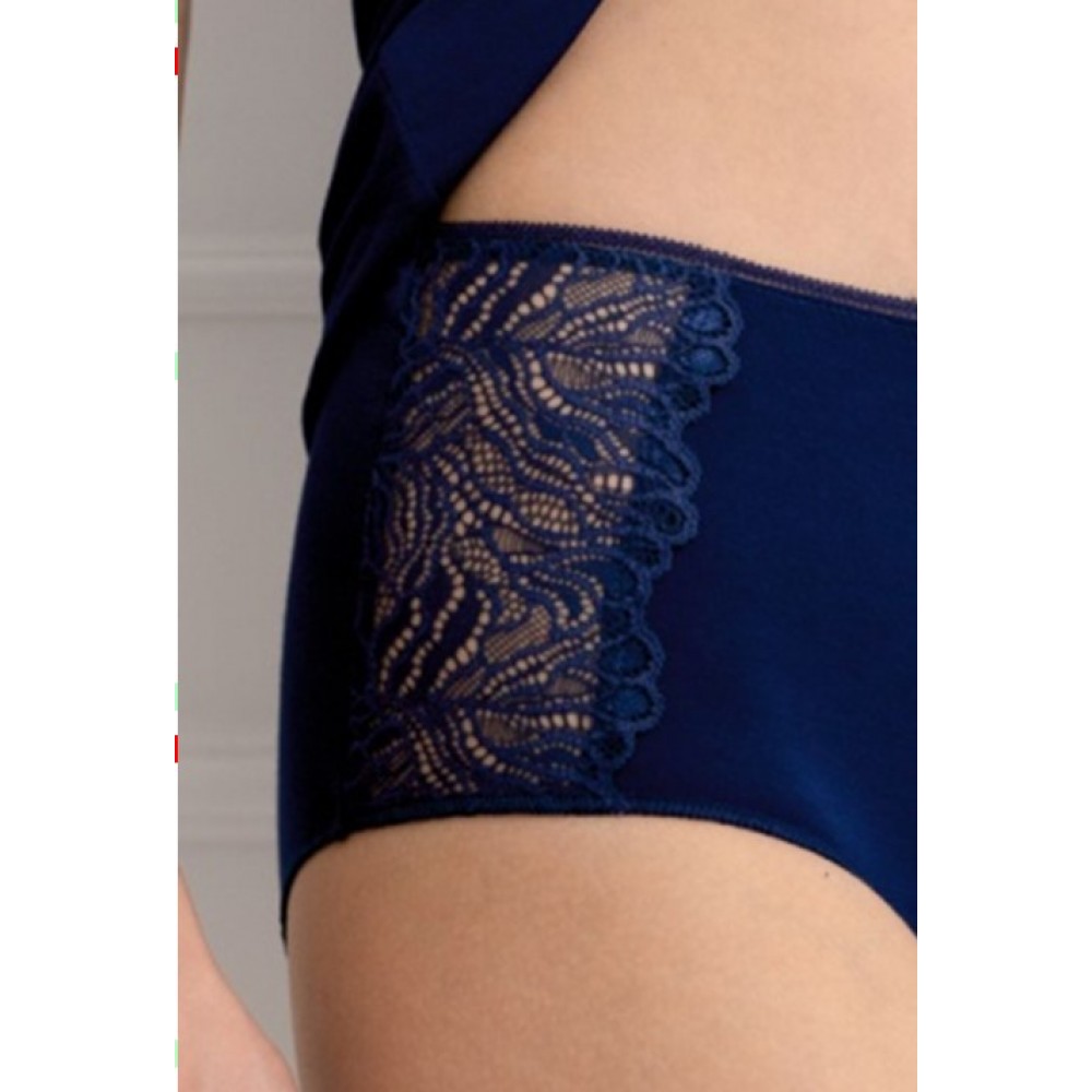 Комфортные трусы макси слип с высокой линией талии выполнены из натурального полотна и отличаются удобной посадкой по фигуре. По бокам декорировано кружевными ставками. По ножкам деликатный шов, по талии декоративная тесьма. По середине пришит декоративный бант.